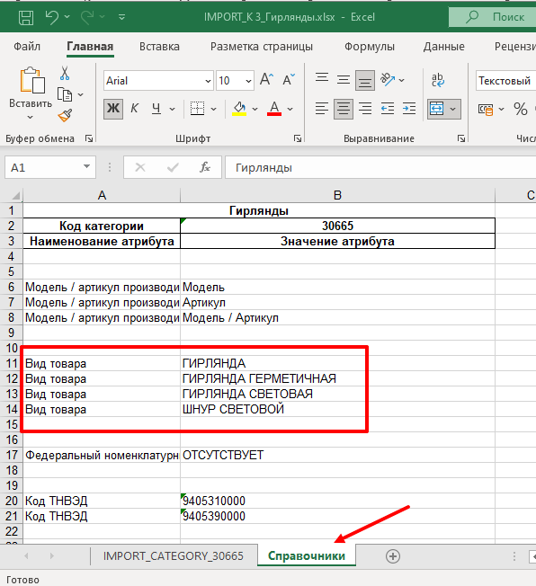 Значения можно дополнять, но желательно в соответствии с рекомендациями на странице «Справочники» в шаблонах загрузки карточек