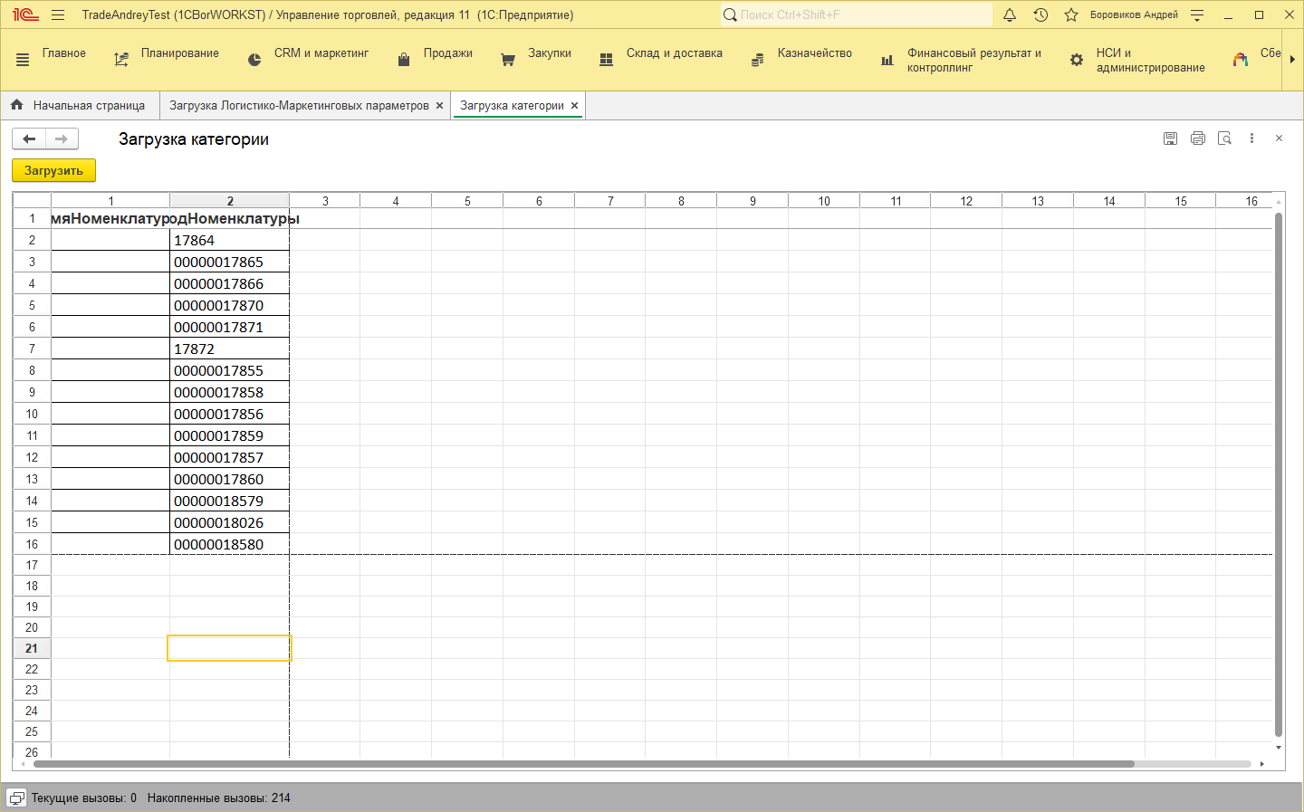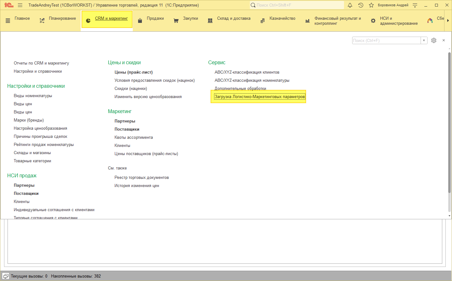 Загрузка находится в подсистеме «CRM и маркетинг» - Сервис – «Загрузка Логистико-Маркетинговых параметров».