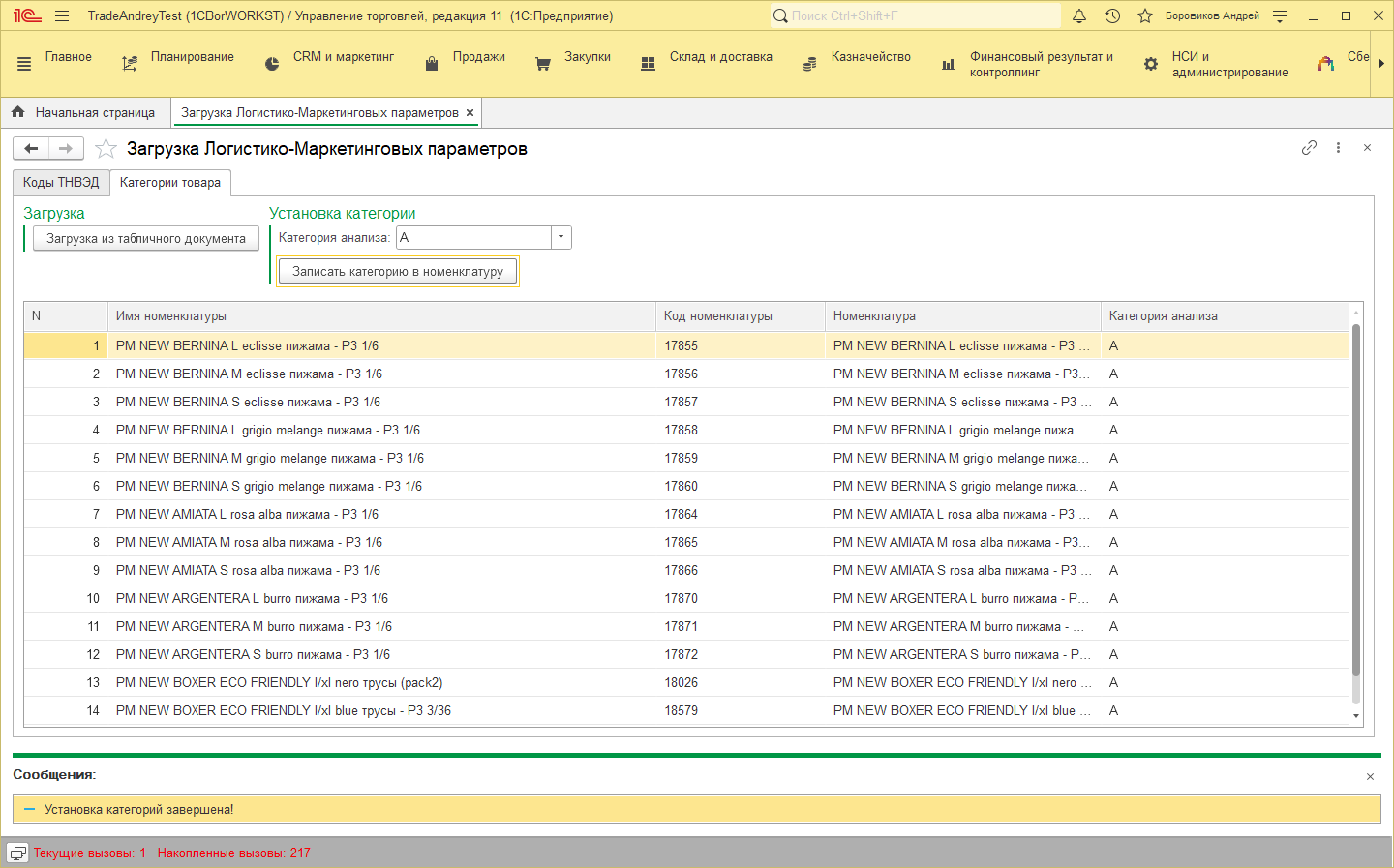 Нажимаем кнопку «Записать категорию в номенклатуру», в результате категория будет изменена.