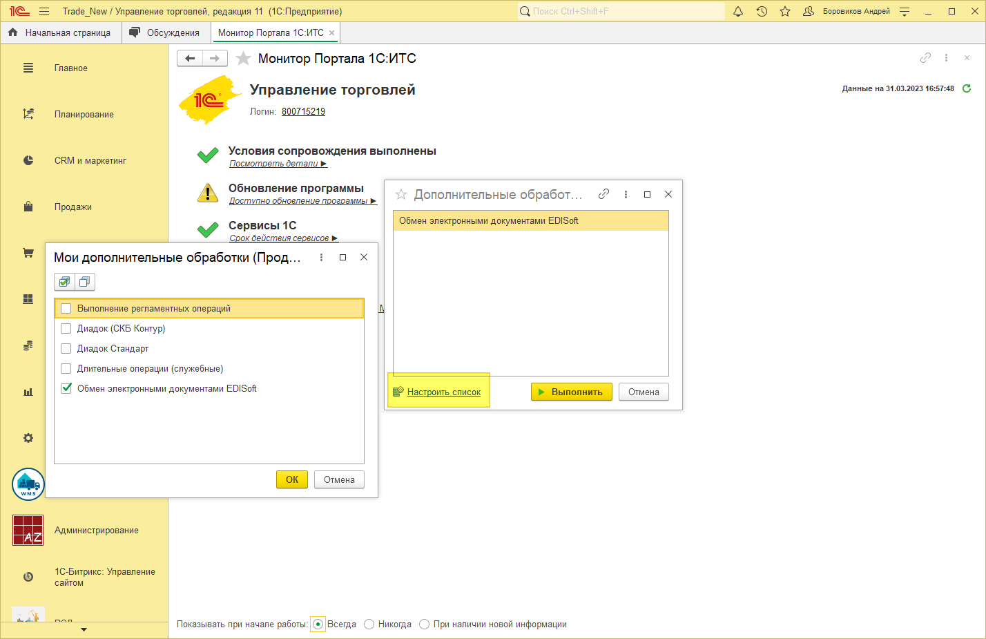 Если в окне «Дополнительные обработки» пусто, то нажимаем кнопку «Настроить список».