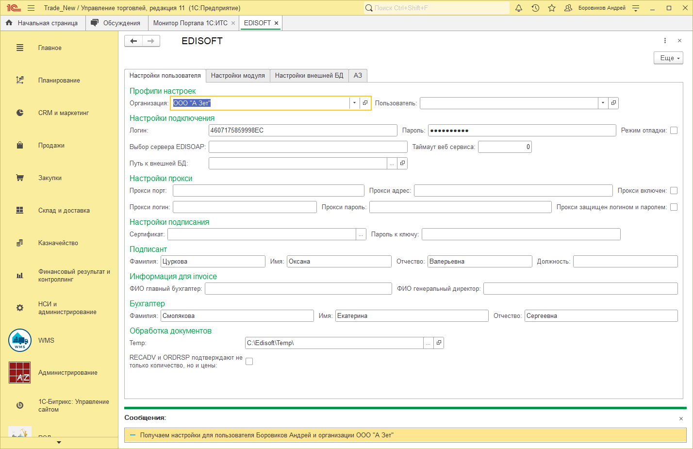 `ЭДИ каталог внешней базы данных: Edisoft_new``