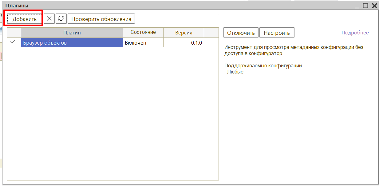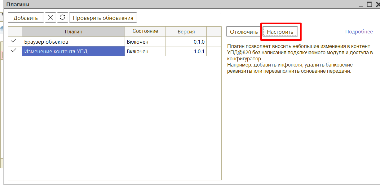 - Закройте окно Библиотеки плагинов и нажмите Настроить:
