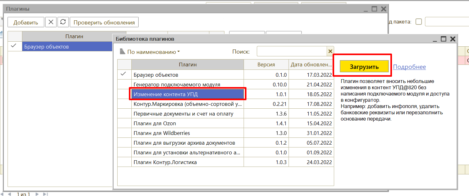 - Через меню Файл – Открыть запустите файл ДиадокВключениеПлагинов.epf