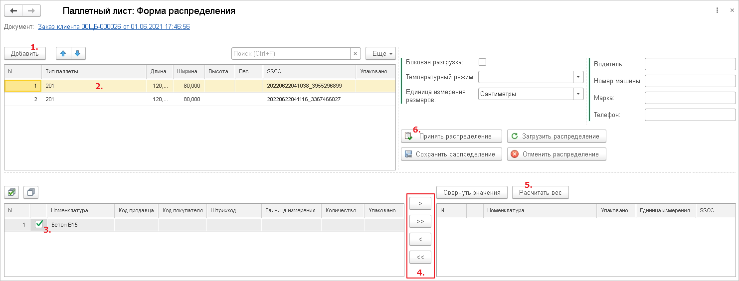 Важная особенность: форма распределения открывается двойным кликом на строку SSCC в динамическом списке.