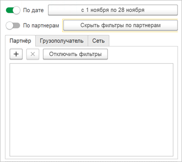 -Переключатели «По дате» и «По партнёрам» отключают соответствующие фильтры без изменения их настроек.