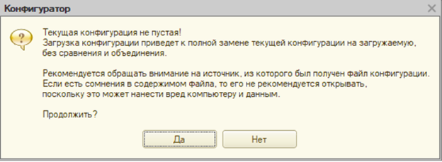 Установку релиза 1.0.6.0 и выше необходимо производить через конфигуратор. Для этого после открытия конфигуратора необходимо: