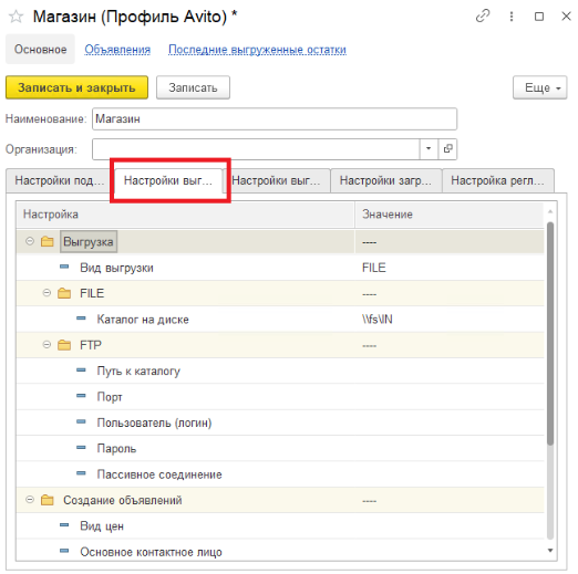 Далее можно перейти к вкладке «Настройки выгрузки объявлений»: