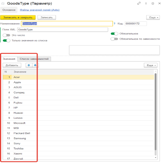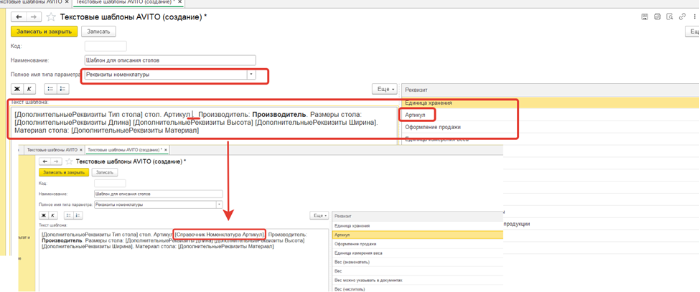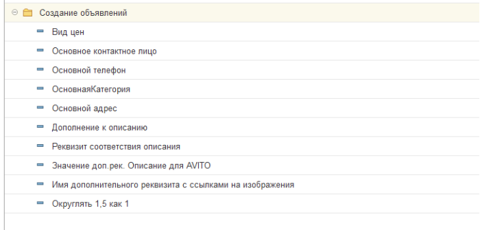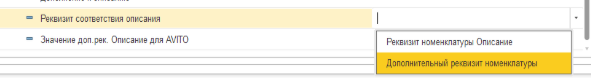 • Значение доп. рек. Описание для AVITO – имя дополнительного реквизита с описанием;