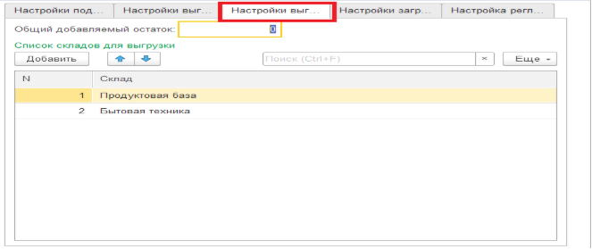 • Добавляемый остаток (добавляем или отнимаем от выгружаемого)
