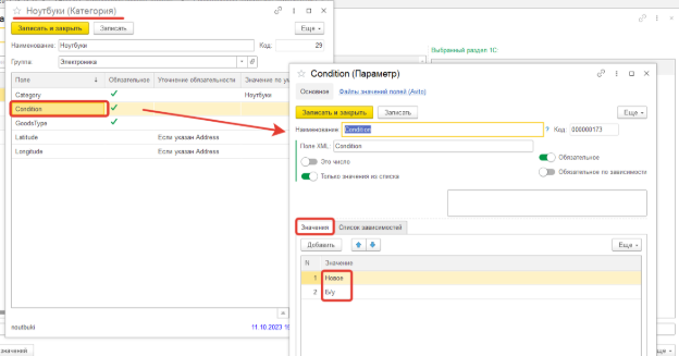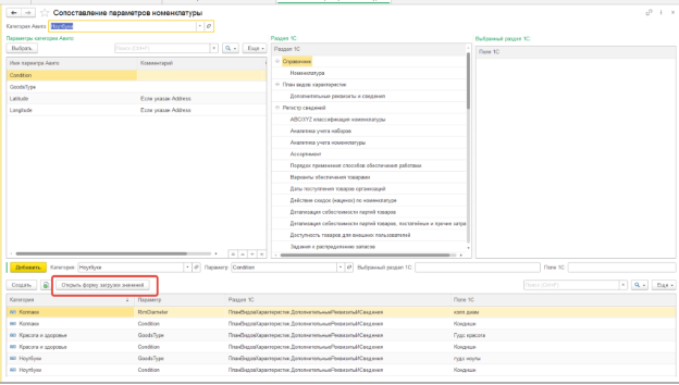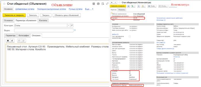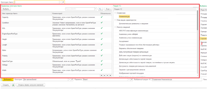 • Загрузка параметров объявления в дополнительные реквизиты номенклатуры