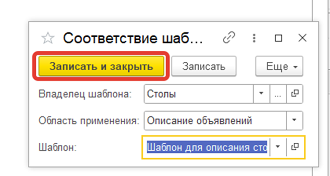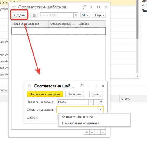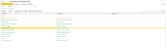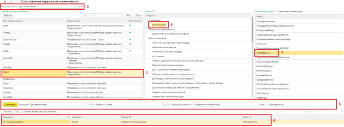 • Сопоставление параметров объявления с дополнительными параметрами номенклатуры