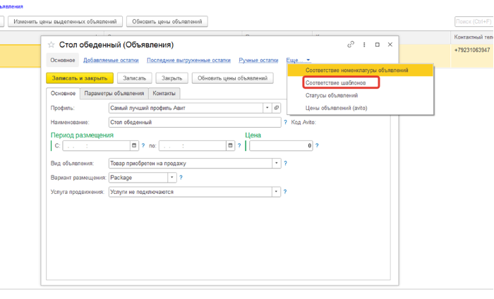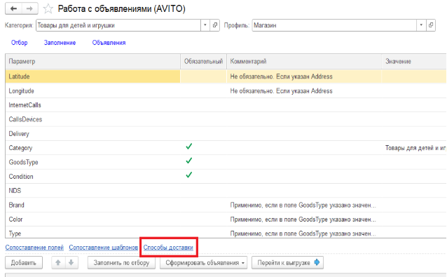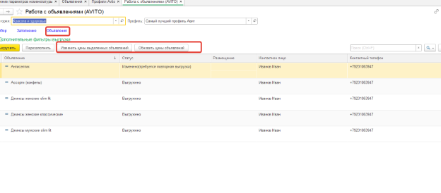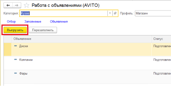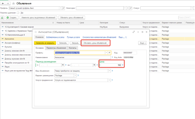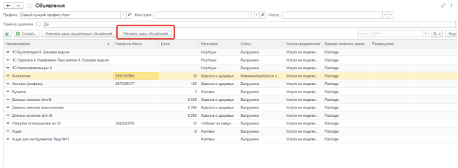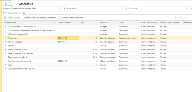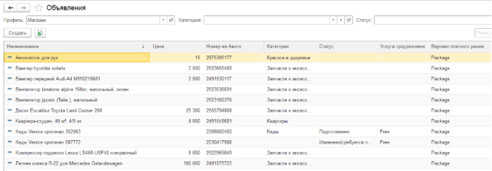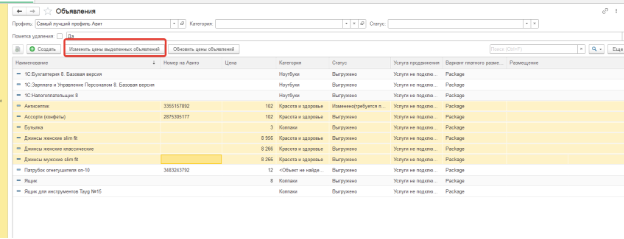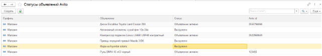 • Загрузка объявлений из ЛК в 1С с возможностью перезаполнения