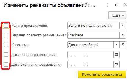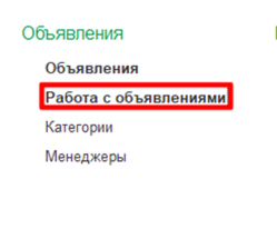 • Основная категория – категория объявления по умолчанию (выбранная категория будет подставляться автоматически при работе с обработкой «Работа с объявлением»);