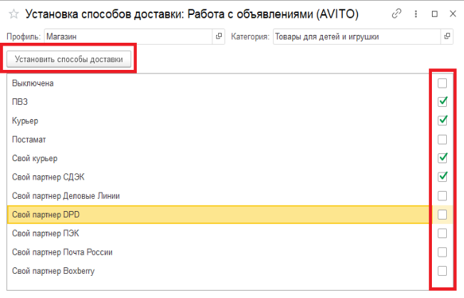 3. Для работы в 1С с заказами Авито Доставки у пользователя должна быть подключена “Доставка для бизнеса”.