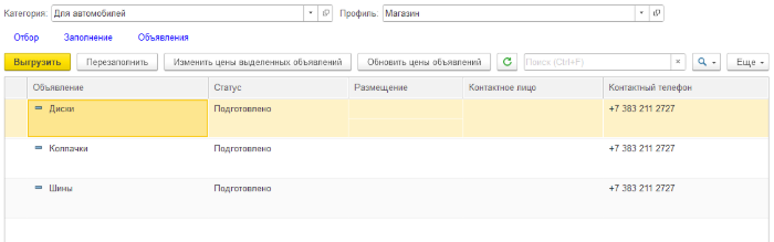 После завершения загрузки в разделе “Объявления” в выбранном ранее профиле появятся созданные объявления