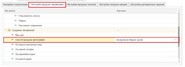 • Имя дополнительного реквизита с ссылками на изображения – имя реквизита с хранящимися ссылками на изображение (HTTP, Яндекс диск);