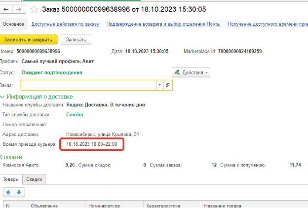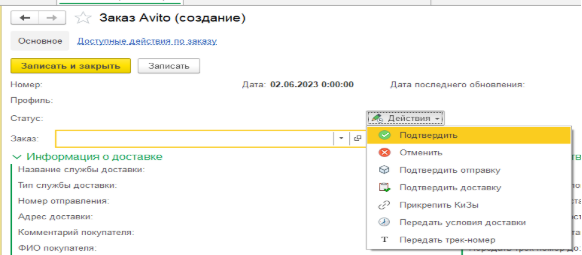 Для упрощения сопоставления заказов на сайте Авито и в 1С добавлен номер заказа AVITO, соответствующий номеру заказа на сайте.