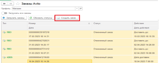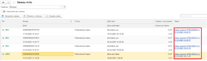 Созданные заказы будут автоматически прикреплены к заказам Авито, также в форме списка появится ссылка для быстрого перехода к ним: