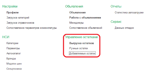 Добавляемый остаток (Помимо настройки в профиле) и ручной остаток возможно устанавливать по каждому объявлению индивидуально. Для данной механики используются два регистра с соответствующими наименованиями, которые можно найти в разделе «Управление остатками».