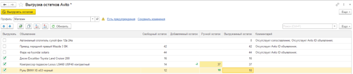 • Выгружаемый остаток (остаток, который будет выгружен на Авито)