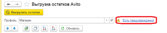 При открытии в данной обработке будут отображаться все созданные объявления, не имеющие пометку на удаление. Также при открытии происходит проверка всех объявлений на наличие проблем препятствующих выгрузке остатков в случае наличия таких проблем в верхней части обработки будет отображена надпись «Есть предупреждения»
