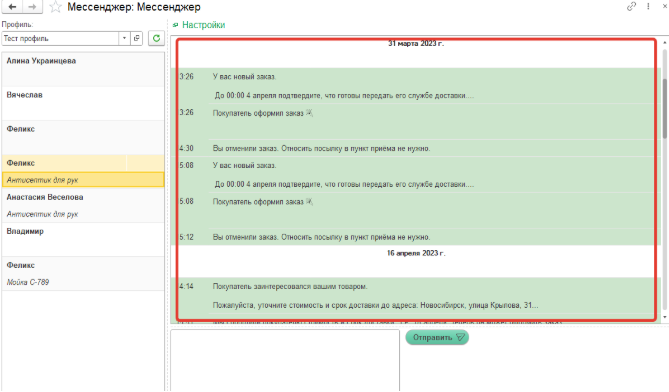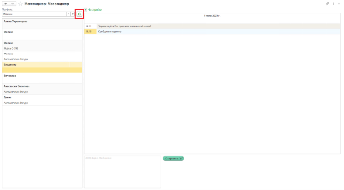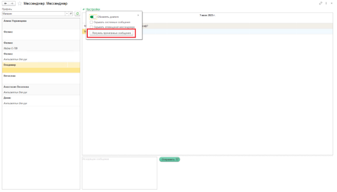 Также бывают ситуации, когда входящее сообщение было прочитано вне 1С (сайт Avito, приложение). Информация о таких сообщениях подгружается в 1с раз в 10 минут, если необходимо получить такие сообщения раньше, можно воспользоваться командой «Получить прочитанные сообщения»: