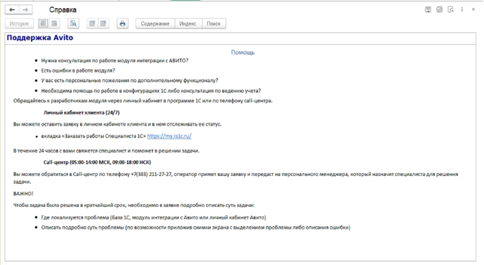 Обращайтесь к разработчикам модуля через личный кабинет в программе 1С или по телефону call-центра.