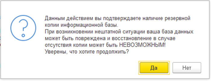 Следующее окно является предупреждением о создании резервной копии базы перед установкой обновления: