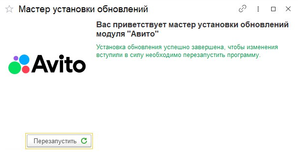 После установки обновления будет предложено перезапустить программу для применения расширения в конфигурацию базы данных.