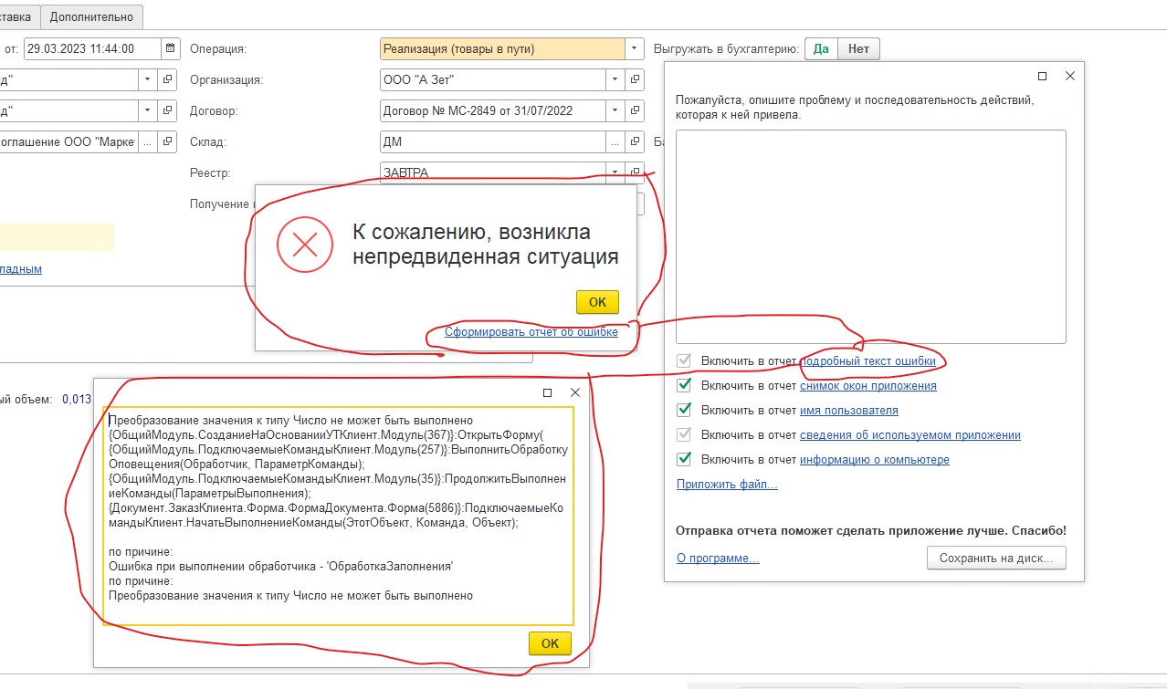 Если появился экран «К сожалению возникла непредвиденная ситуация», то надо нам присылать не этот экран, а расшифровку ошибки или все вместе, что бы мы понимали где искать!!!