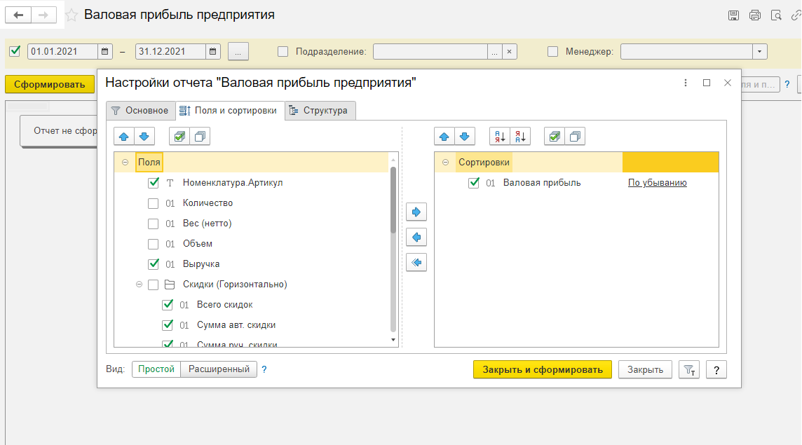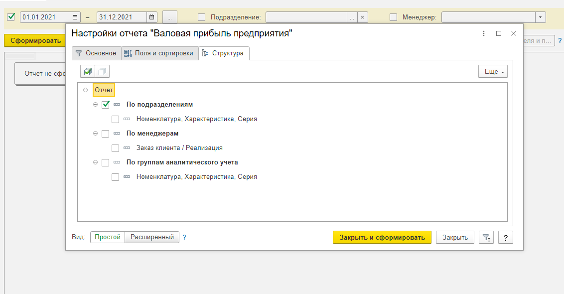 Простой вариант отчёта автоматически сохраняется и будет доступен при следующем формировании.