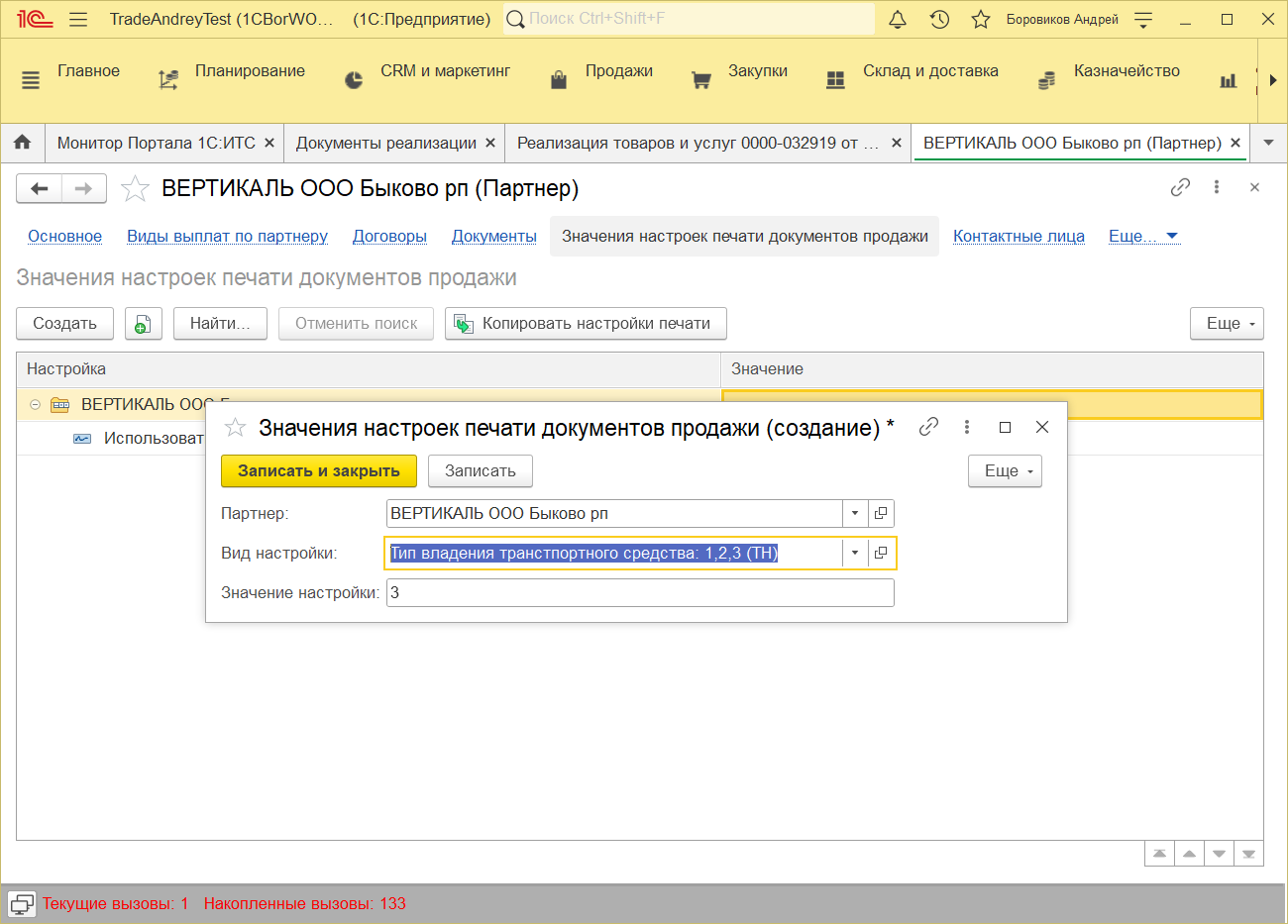 Для вывода типа владения транспортного средства необходимо установить настройку печати «Тип владения транспортного средства: 1,2,3 (ТН)» указав тип владения.