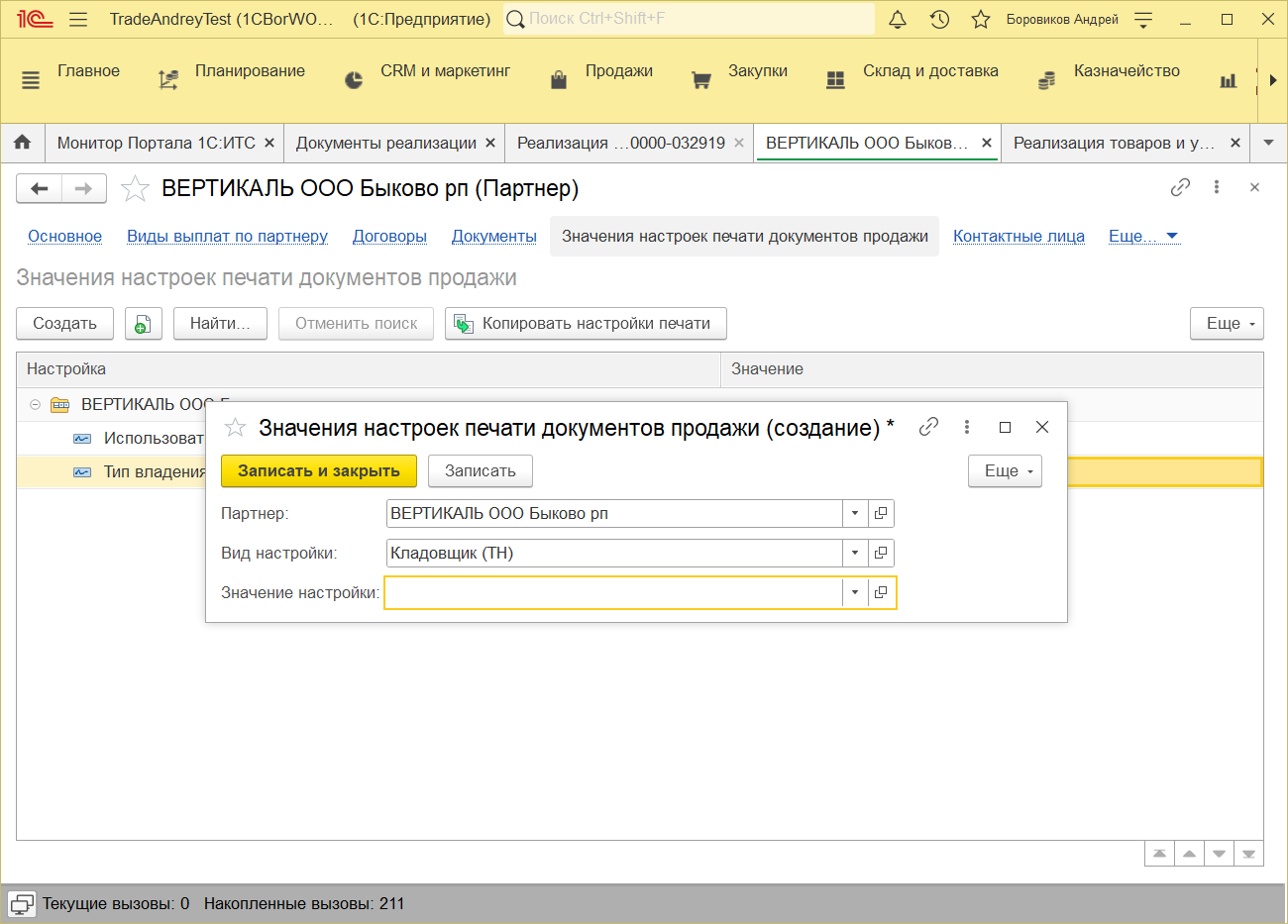 Для вывода кладовщика необходимо заполнить настойку печати «Кладовщик (ТН)», выбрав кладовщика.