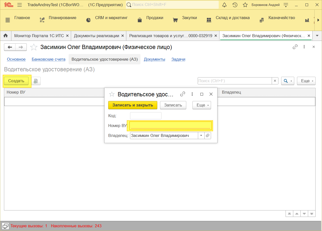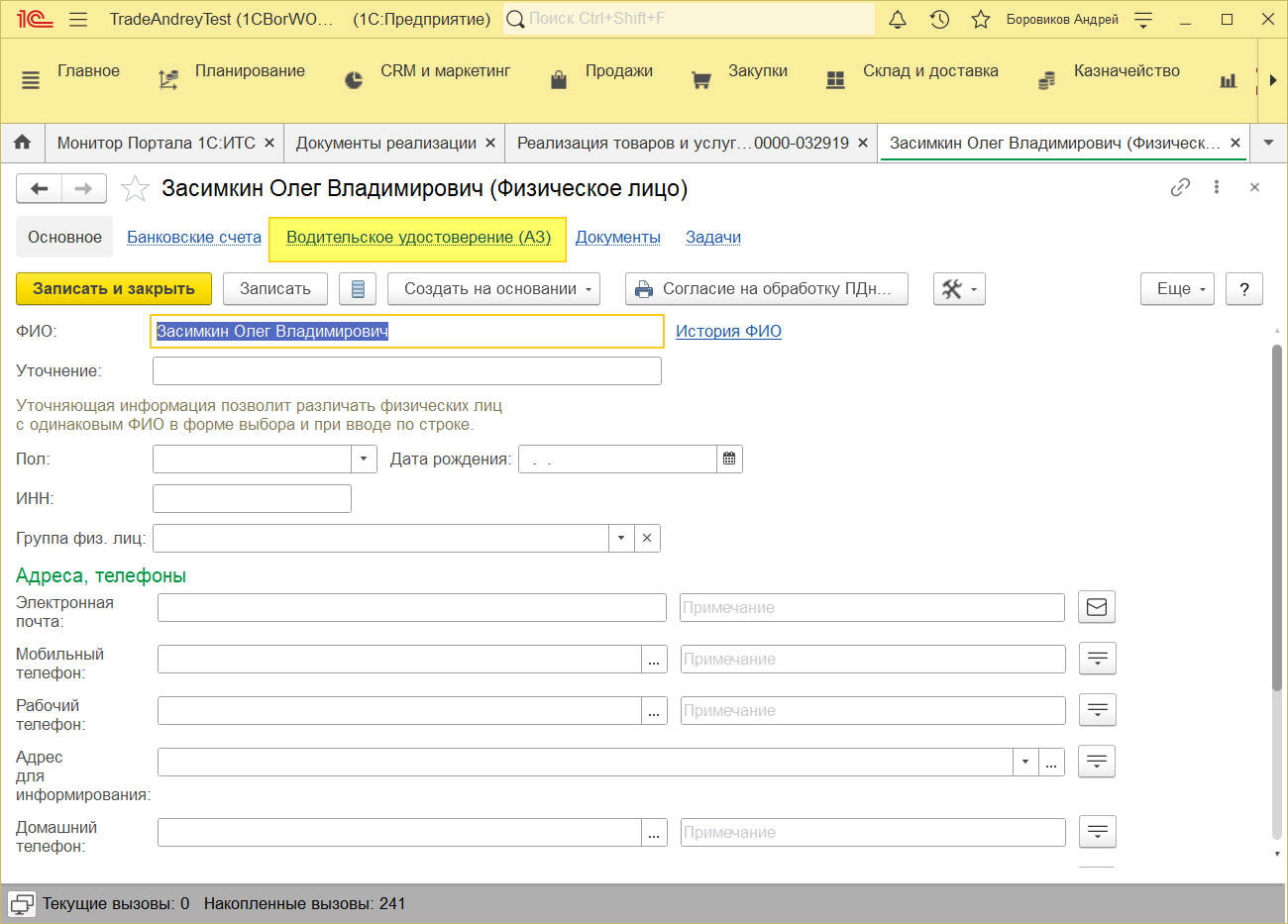 Для вывода водительского удостоверения необходимо в карточке физического лица (водителя) добавить номер ВУ.