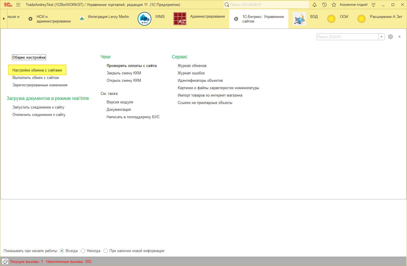 Заходим в подсистему «1С-Битрикс: Управление сайтом», открываем «Настройки обмена с сайтами».