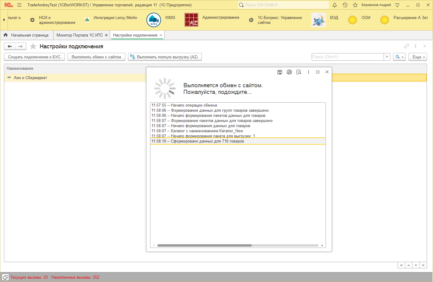 Выгрузка запускается, выйдет окно с сообщениями ниже, по окончании в окне будет написано, что выгрузка завершена.