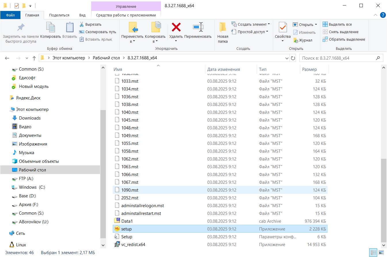 Далее запускаете файл Setup.exe из папки куда распаковали архив с платформой
