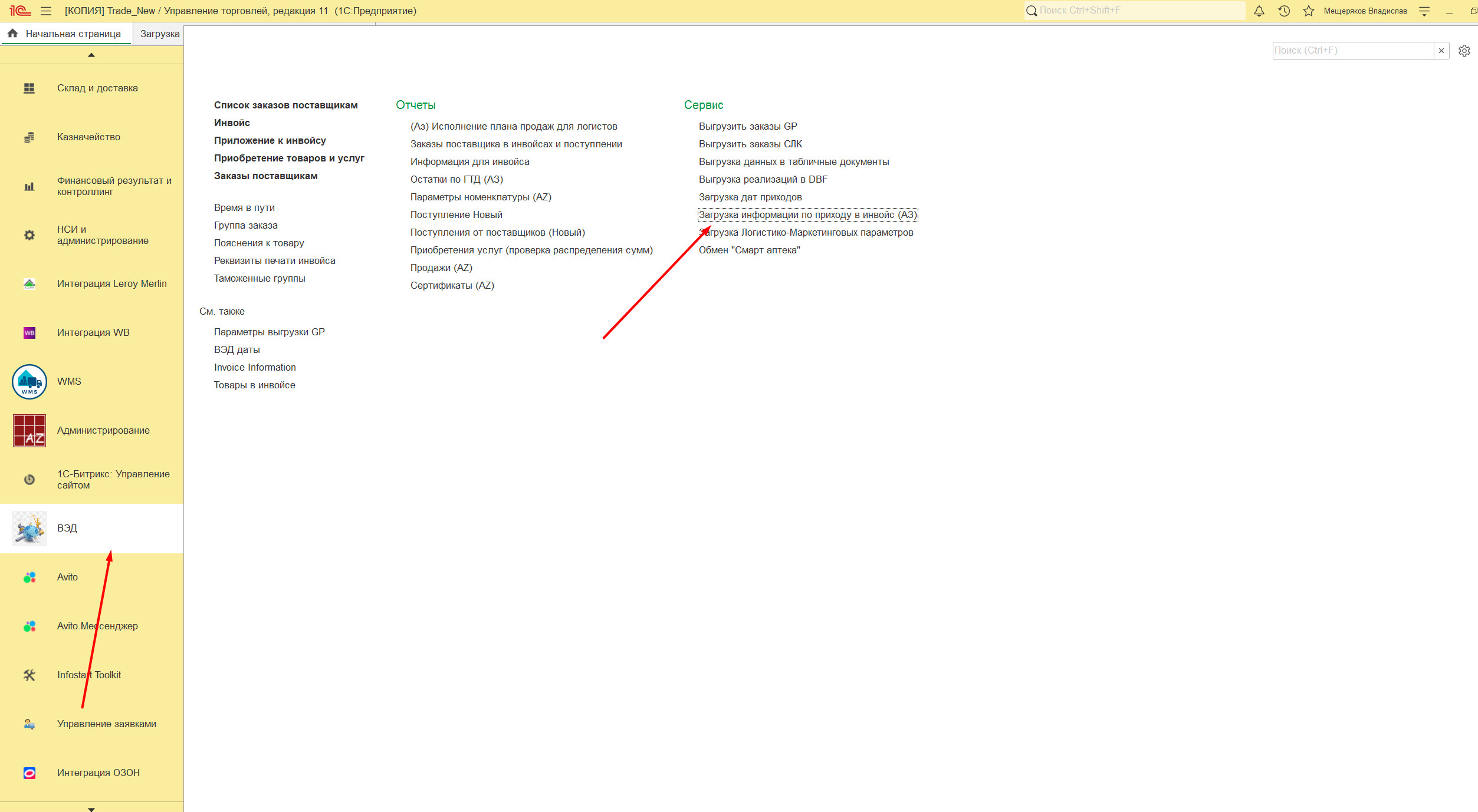 Обработка находится по схеме ВЭД-Обработка «Загрузка информации по приходам в инвойс (А3)» Рисунок 1
