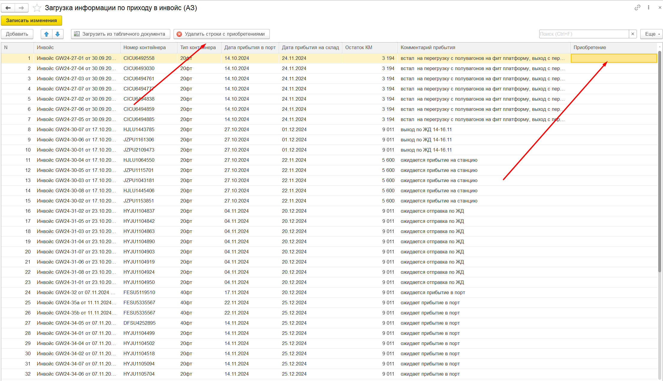 Если у нас появились строки с приобретениями, можно удалить с помощью кнопки «Удалить приобретения» Рисунок 5