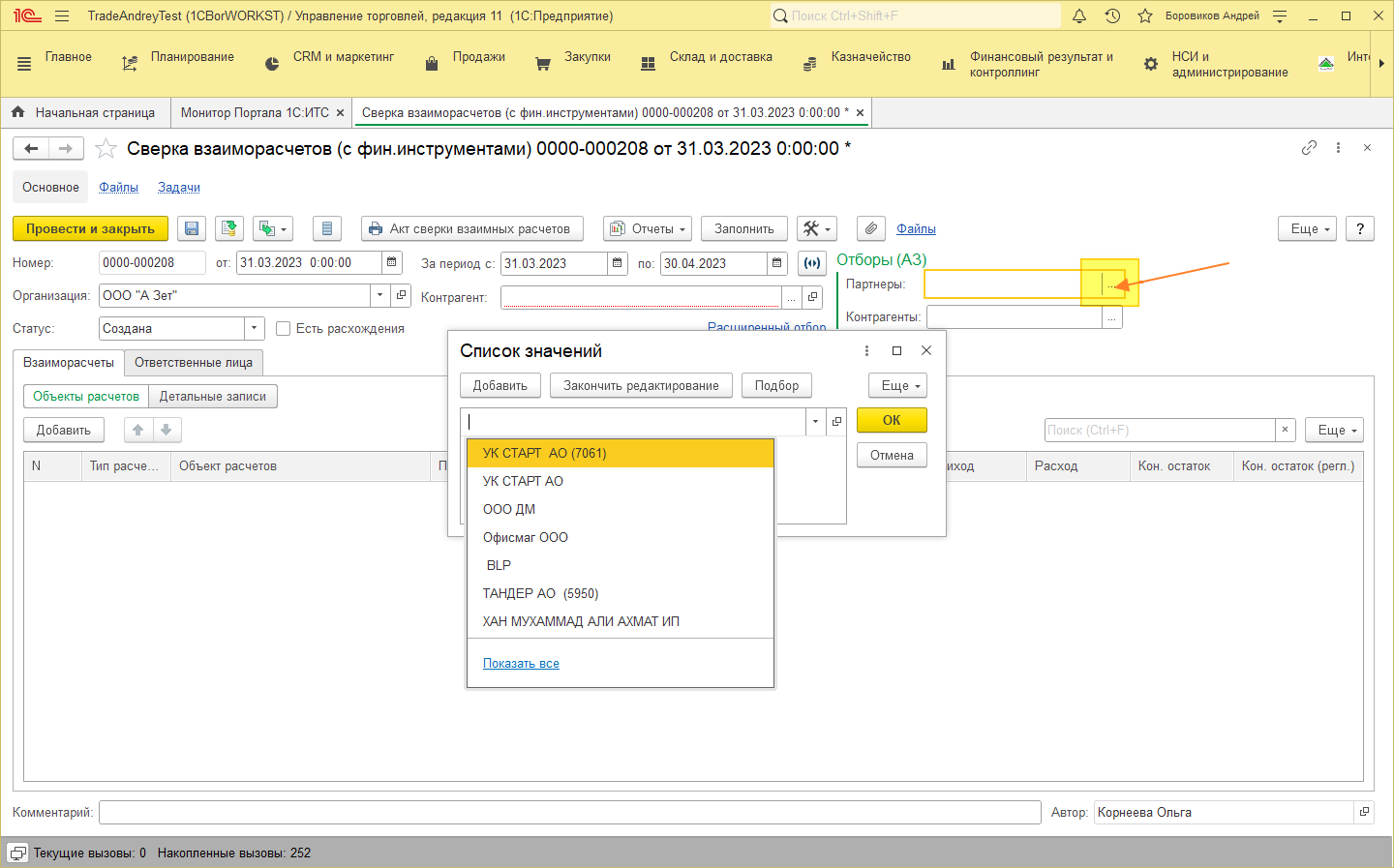 В документе «Сверка взаиморасчетов» добавлены отборы АЗ. При выборе партнера родителя, в поле «Партнеры», происходит заполнение поля «Контрагенты» всеми контрагентами подчиненных партенров. Типовое поле «Контрагент» заполняется контрагентом родителем.
