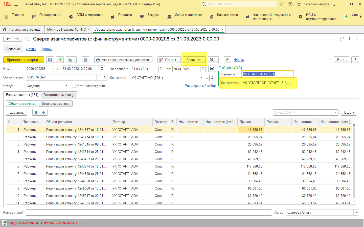 Далее при нажатии кнопки «Заполнить» происходит заполнение документа по всем контрагентам.