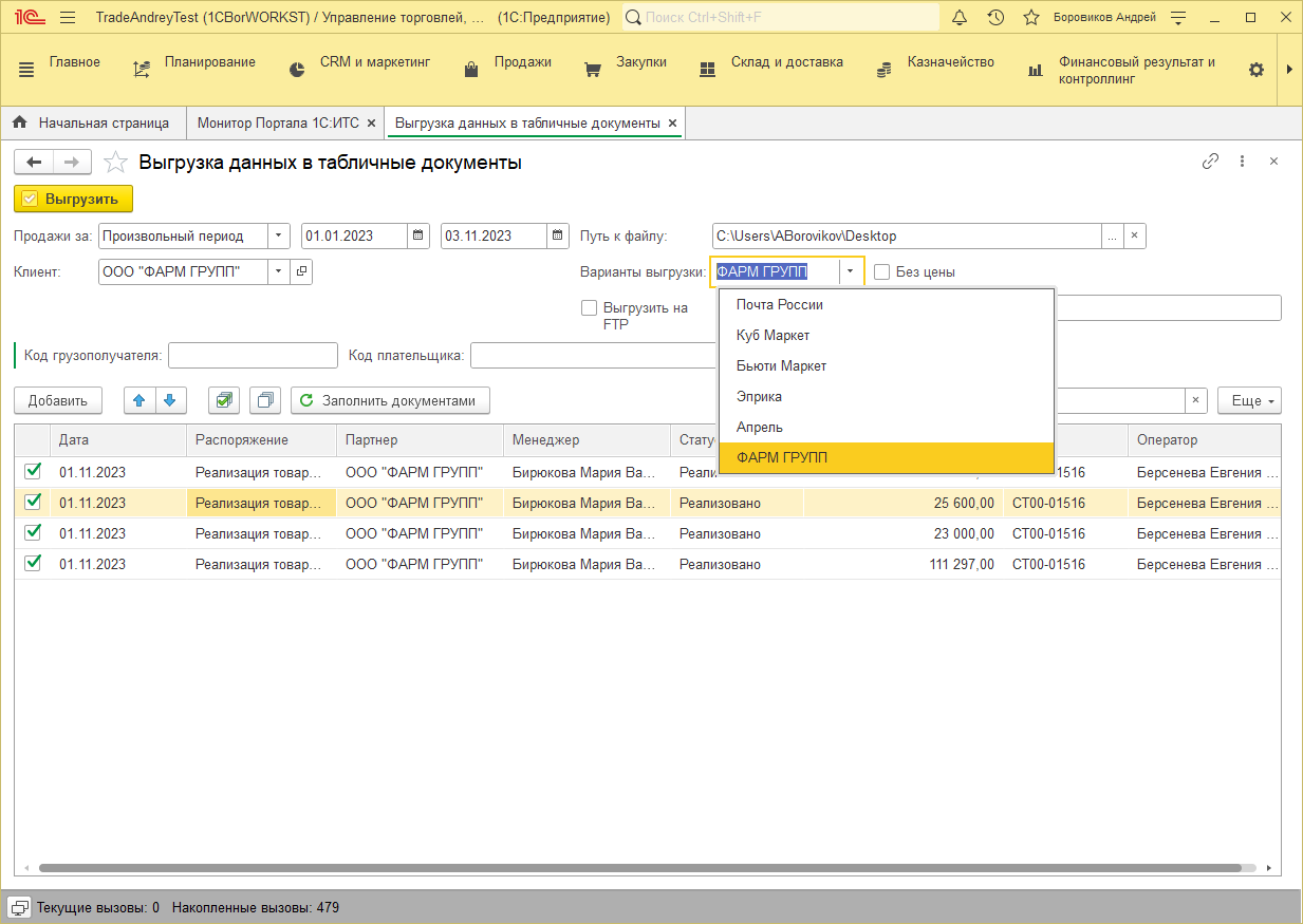 Выбираем период Клиента и нажимаем кнопку «Заполнить документами», получаем список документов для выгрузки.