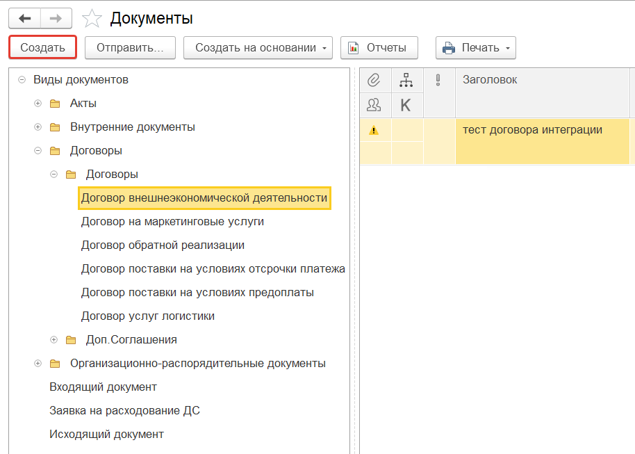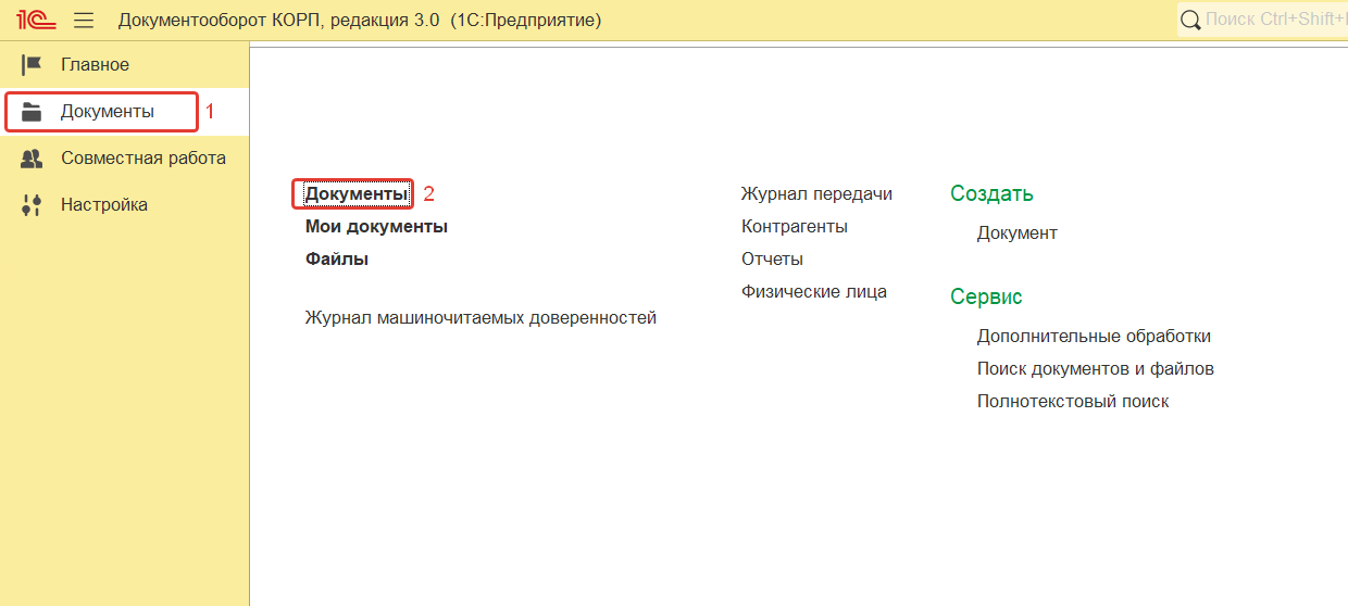После перехода в список документов необходимо нажать кнопку «Создать» документ.