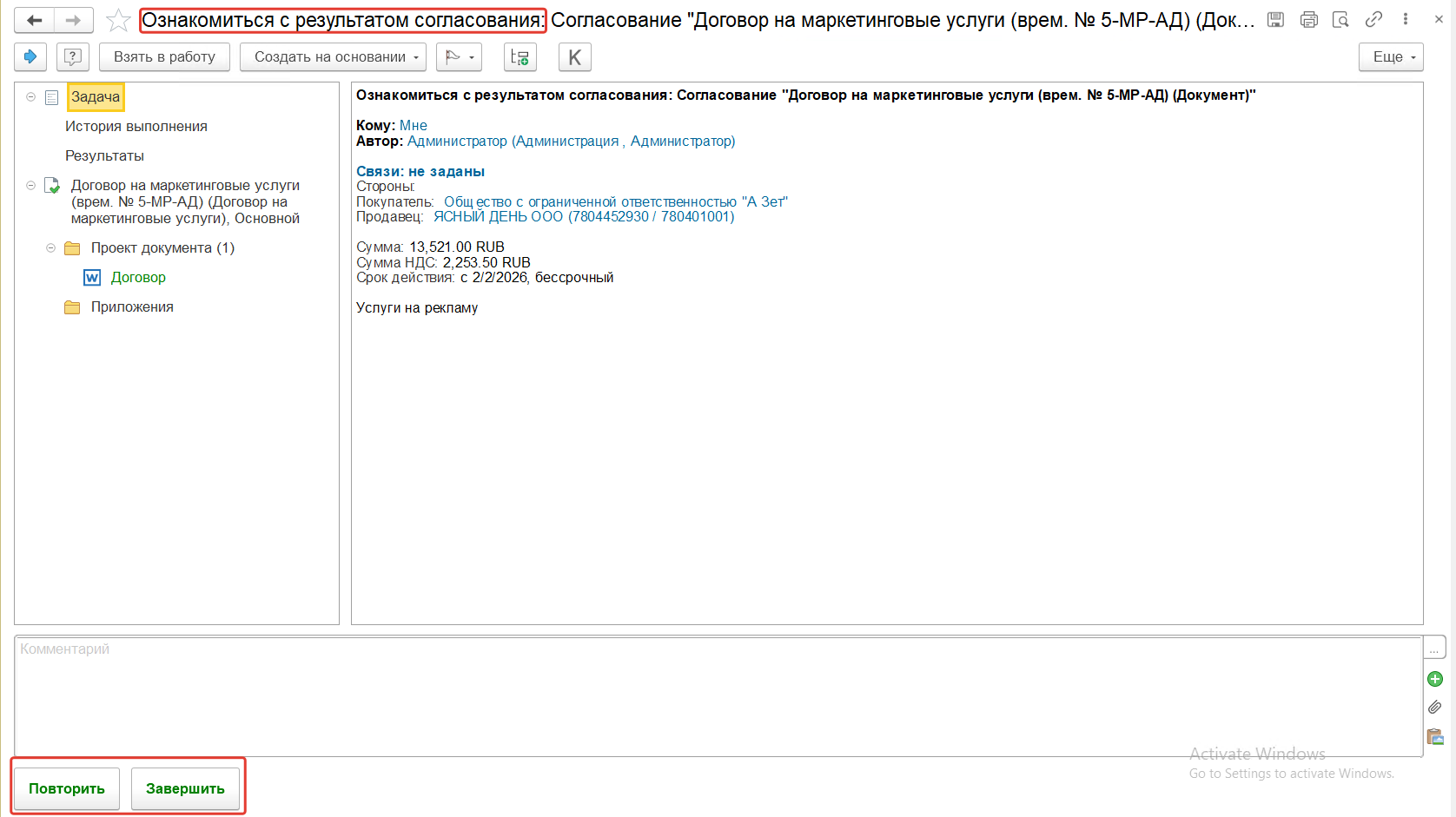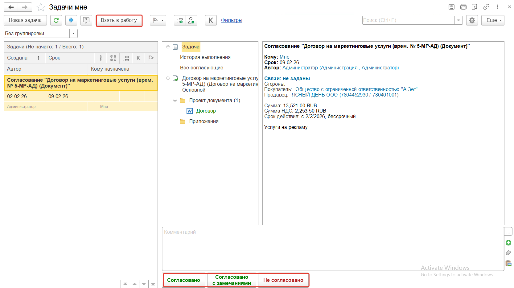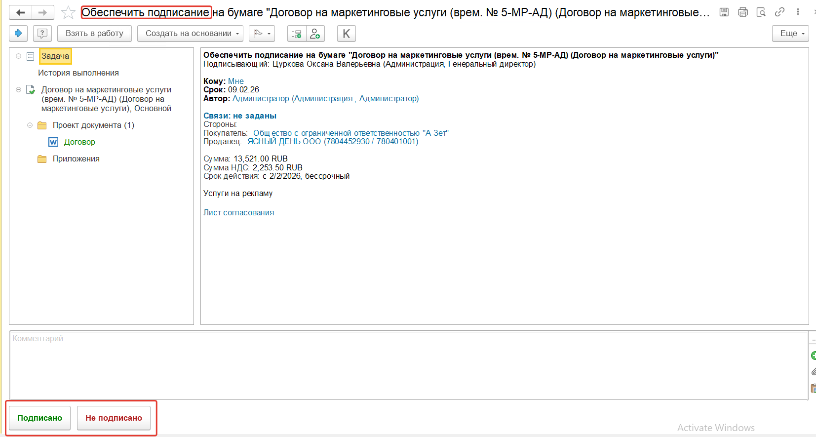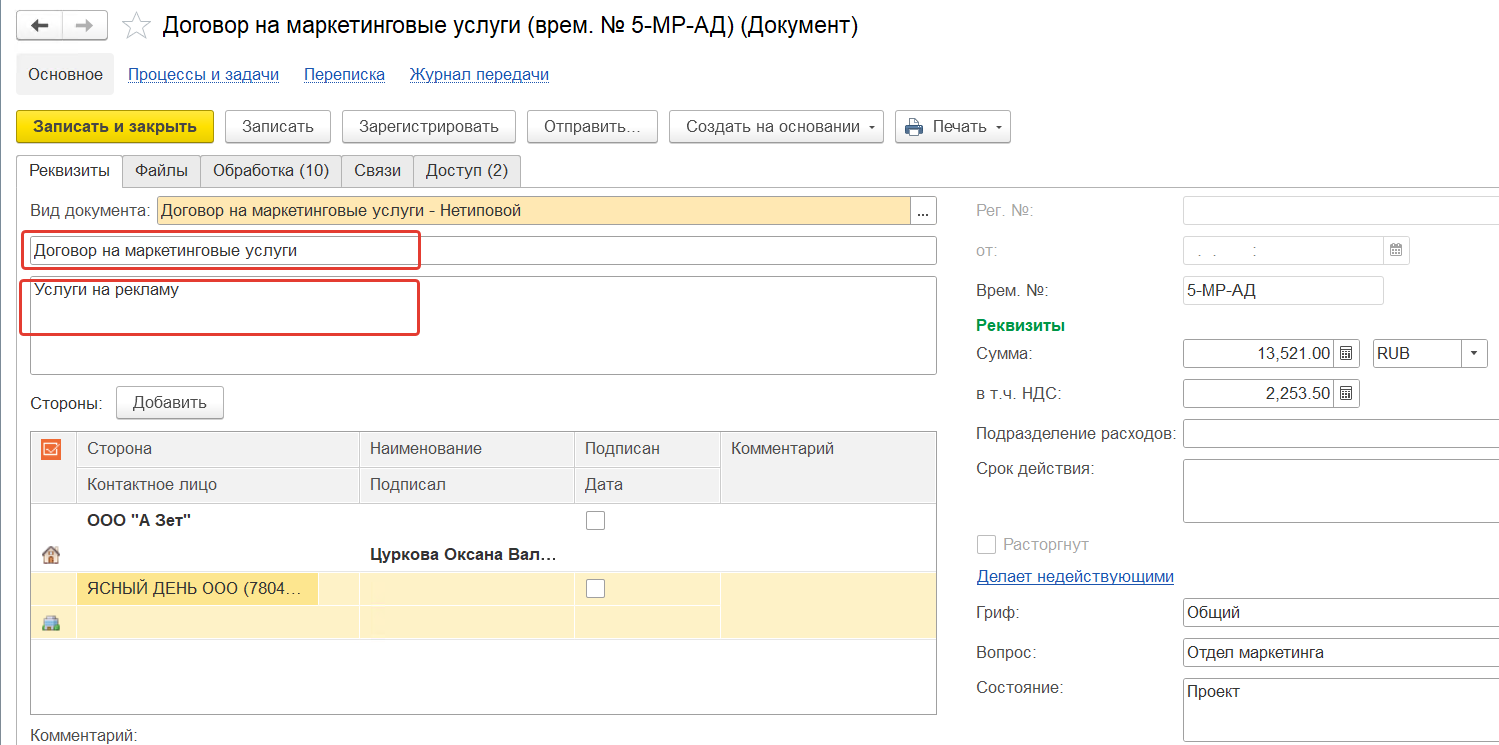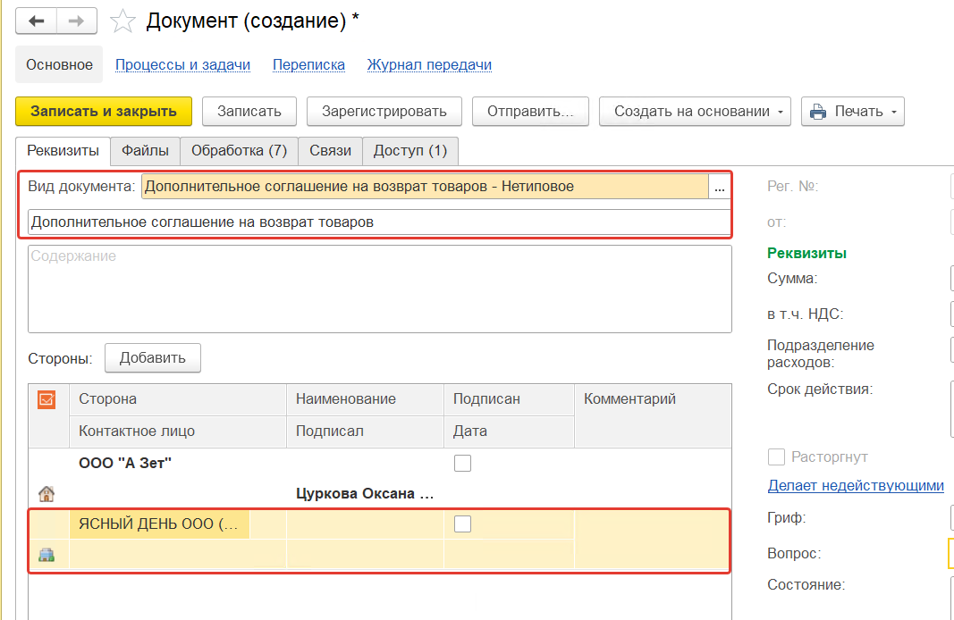Инструкция по работе с 1С: Документооборот «Договора», «Дополнительного соглашения».