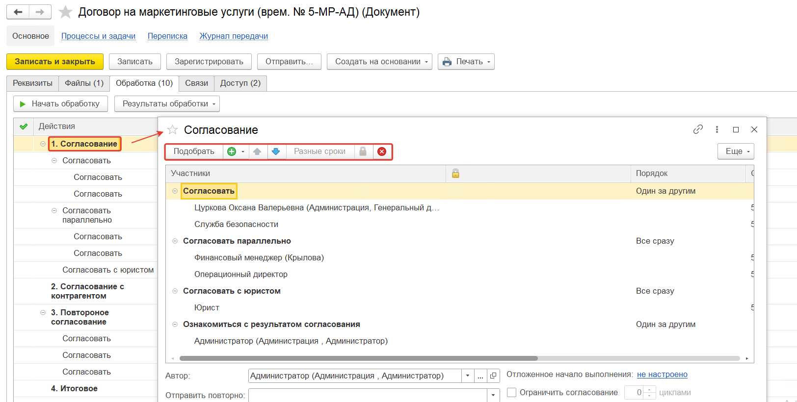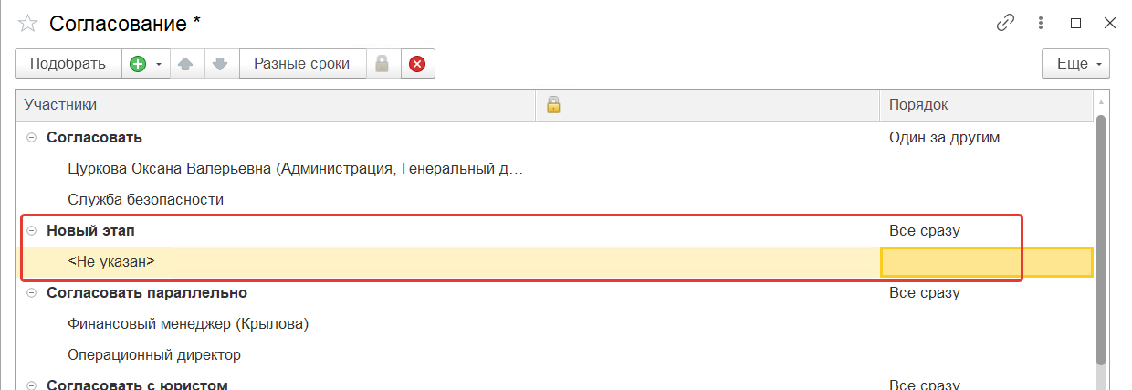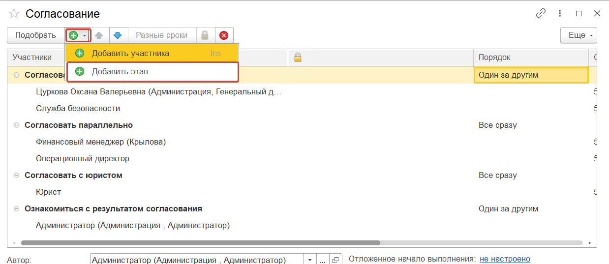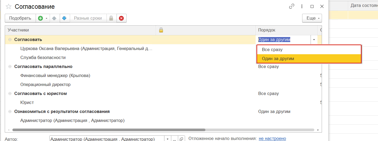 Также можно поменять, порядок по задаче: параллельное согласование или последовательное.